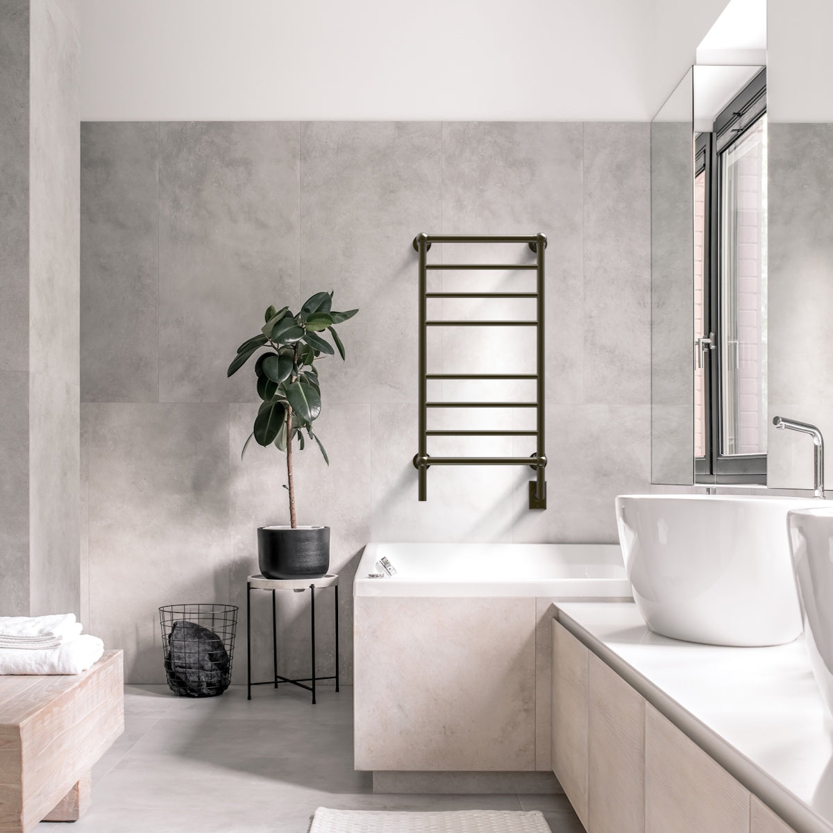 The Amba Traditional Model T-2040 features a classic design with 8 round bars, perfect for drying and warming towels efficiently. Ideal for bathrooms, laundry rooms, mudrooms, or wet rooms, this hardwired towel warmer helps reduce laundry frequency while keeping towels and delicates warm and dry.